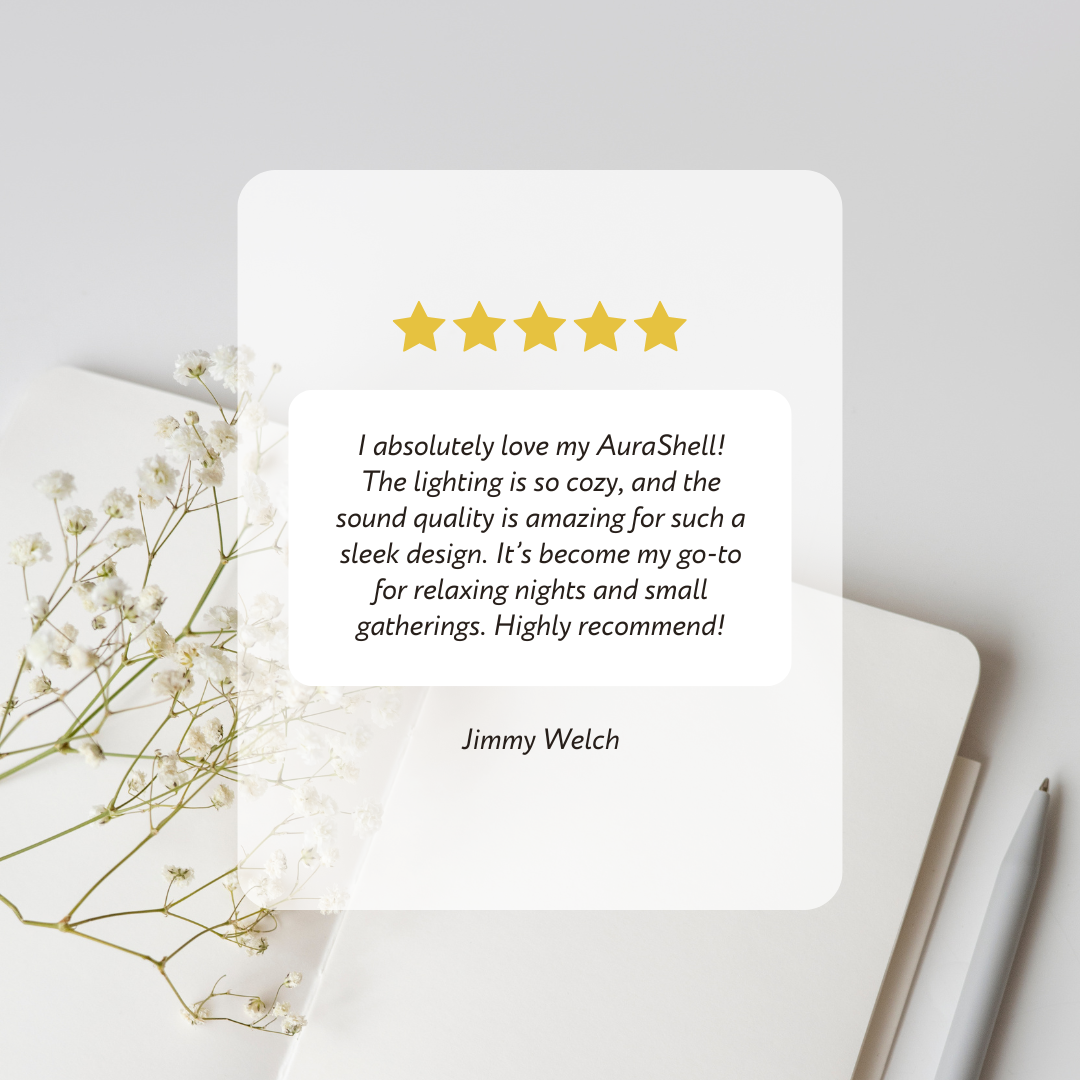 soft, ambient lighting paired with crystal-clear audio, all controlled with just a tap from your phone. The AuraShell turns