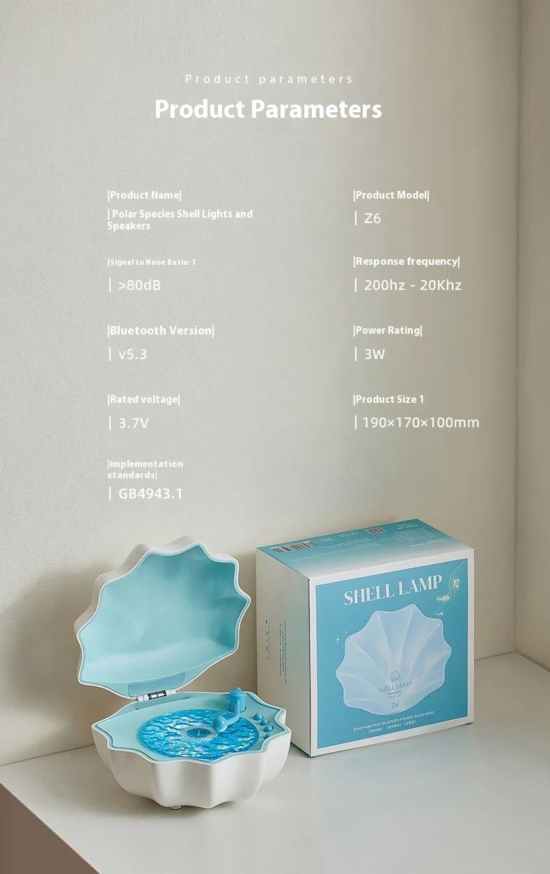 Shell speaker (with Wave light)*1 ,Charging Cable*1