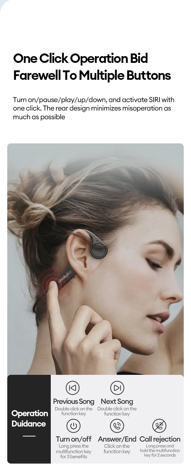 • Estilo de gancho para la oreja: El exclusivo estilo de gancho para la oreja garantiza un ajuste seguro, lo que hace que estos auriculares sean adecuados para cualquier actividad física.