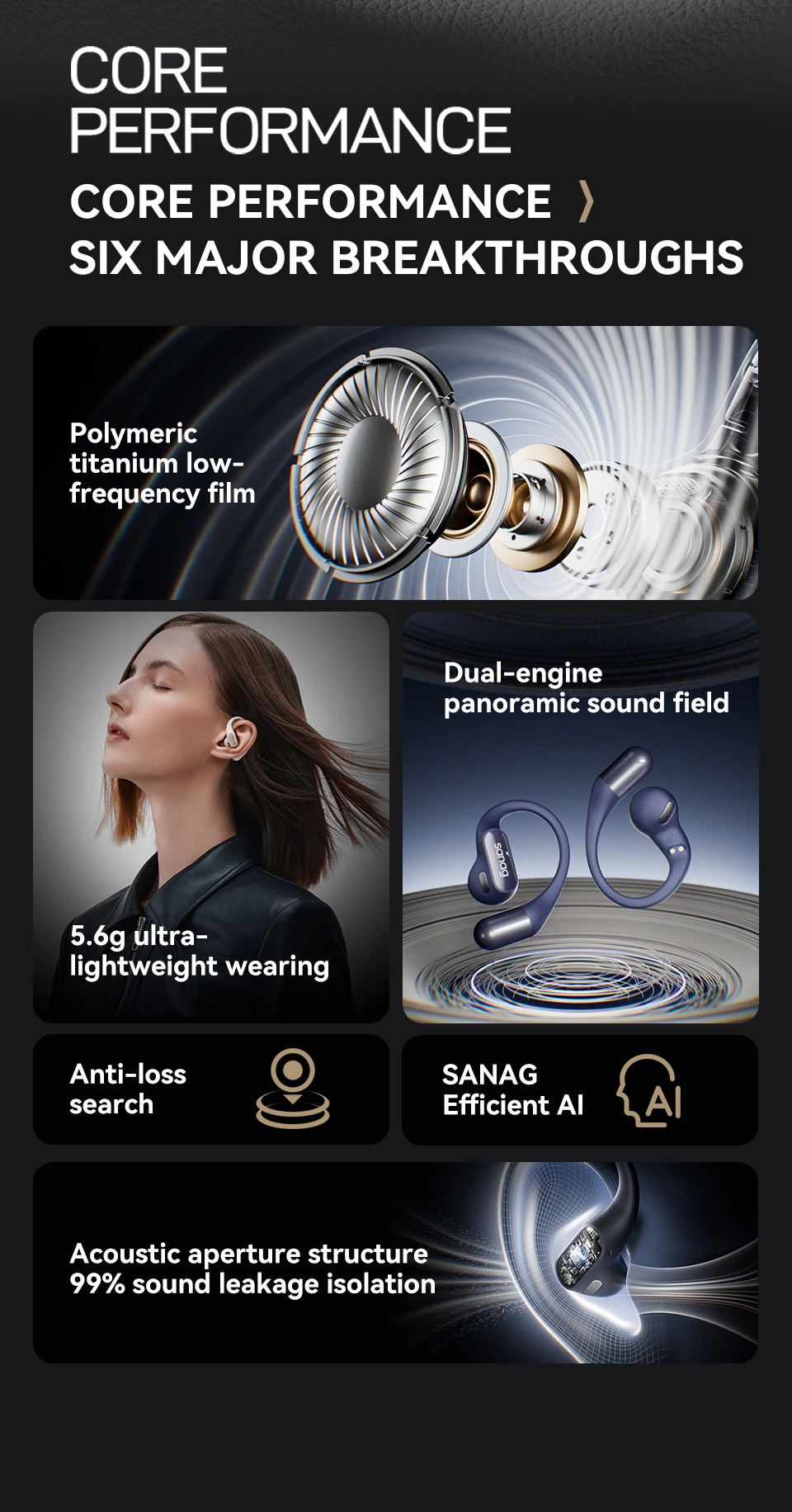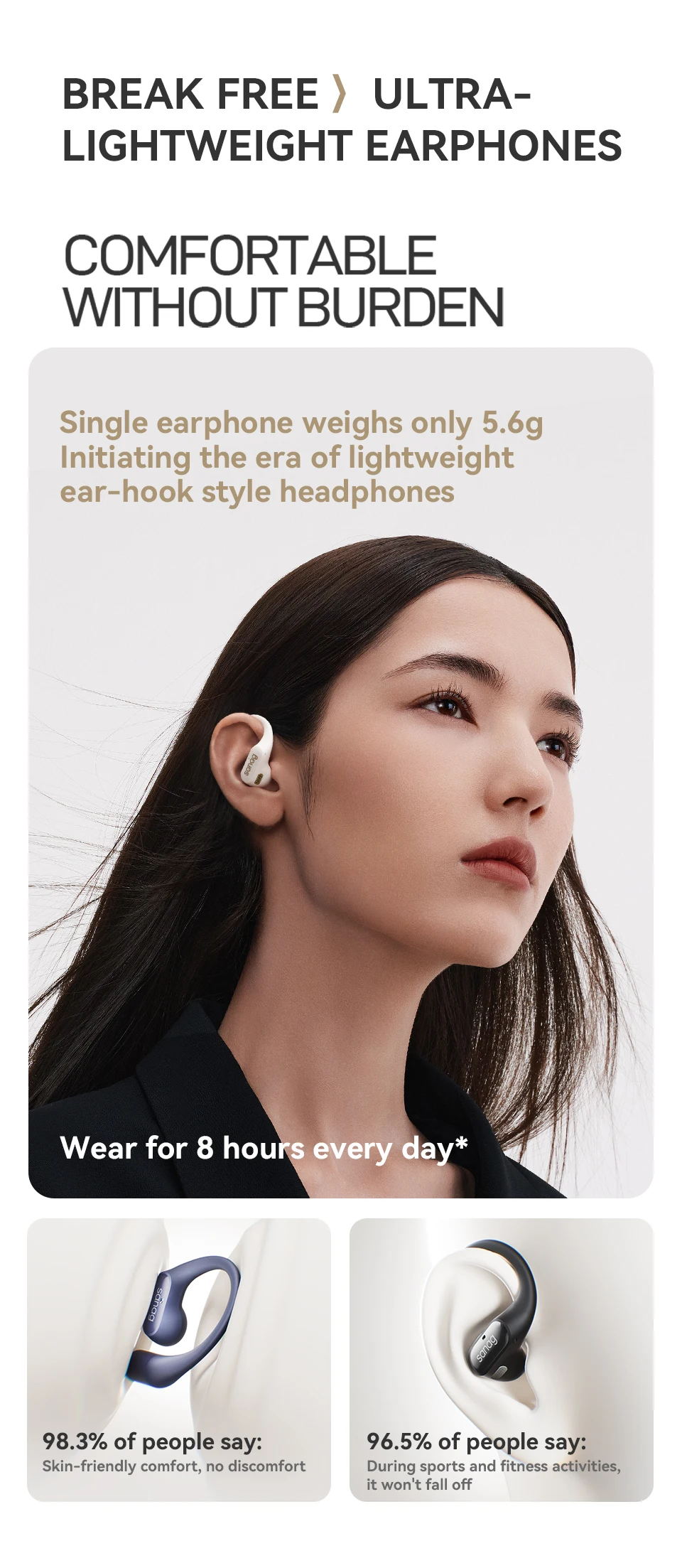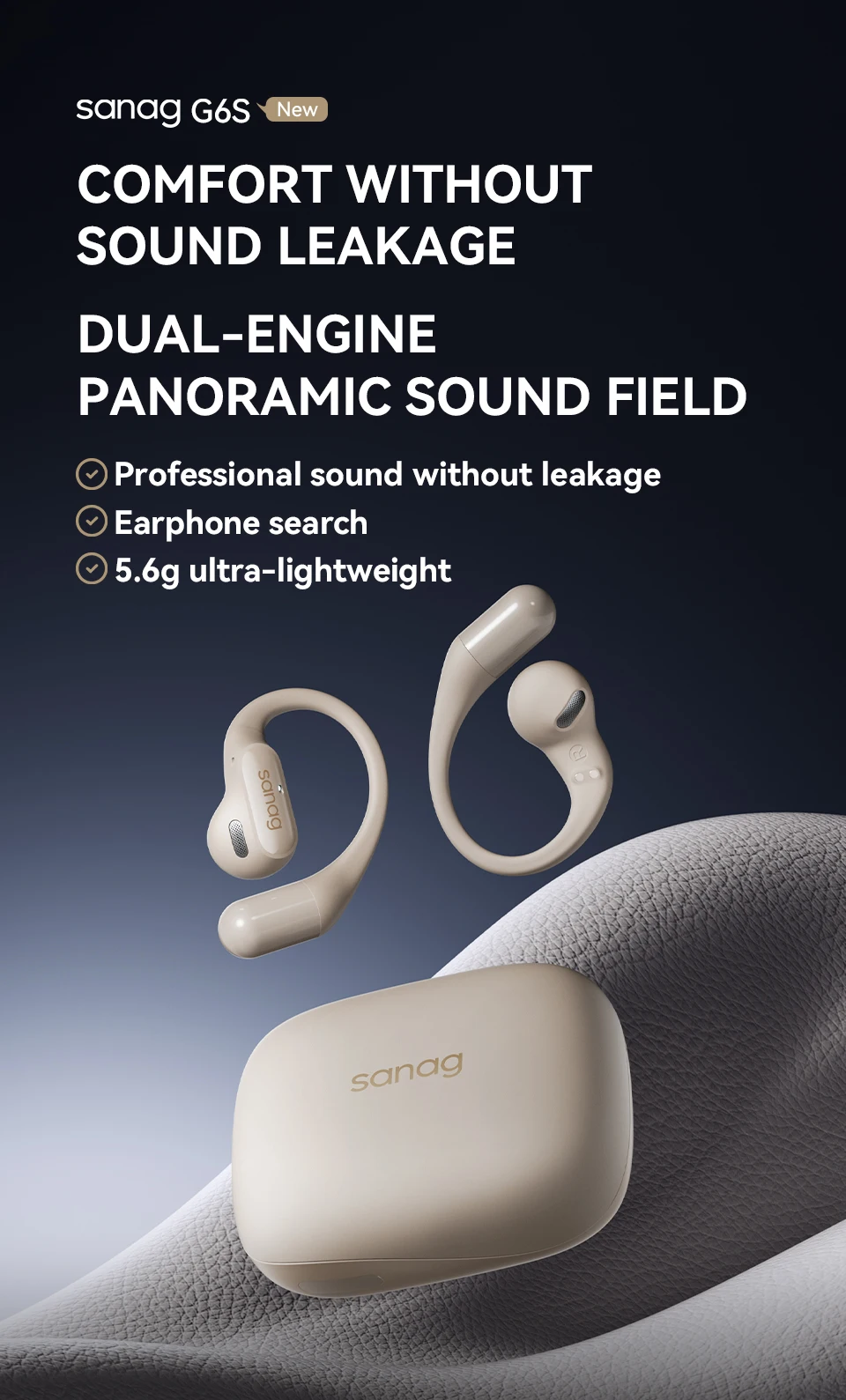El auricular Bluetooth de oído abierto Sanag G6S presenta un diseño ergonómico de gancho para la oreja, que proporciona un ajuste cómodo y seguro para deportes y correr. Con calidad de sonido HiFi y tecnología TWS, estos auriculares inalámbricos son perfectos para juegos y uso diario.