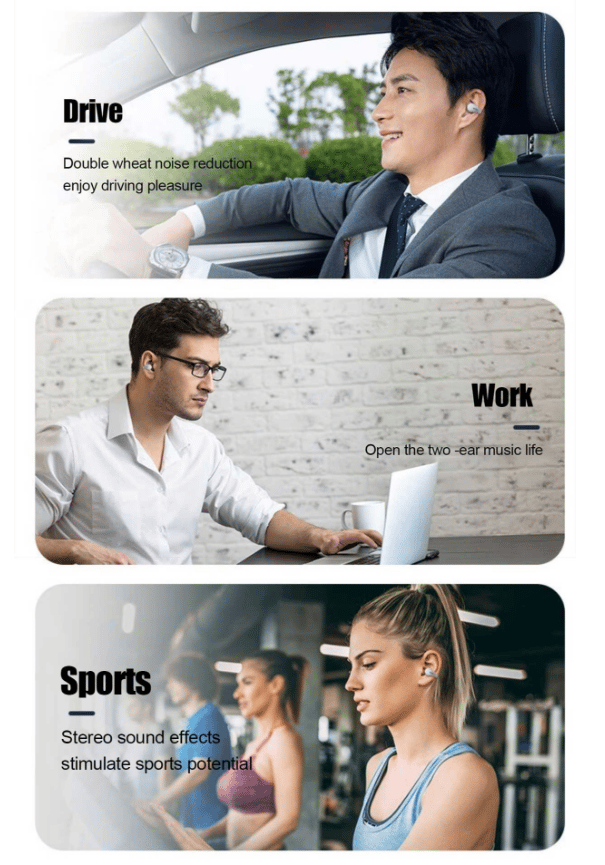 2.【No en el oído】Soporta una calidad de llamada nítida, diseño de clip para la oreja, pequeño e invisible, largo tiempo sin desgaste por presión.