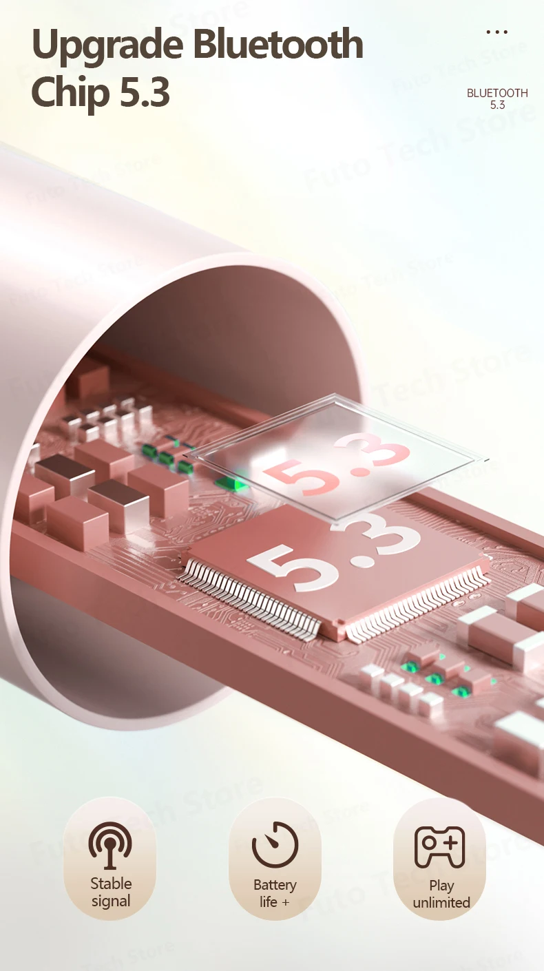 Chip inteligente | Bluetooth 5.3 | Sonido HIFI | Larga duración de la batería | Cómodo de llevar | Diafragma metálico | Bobina dinámica de 13 mm