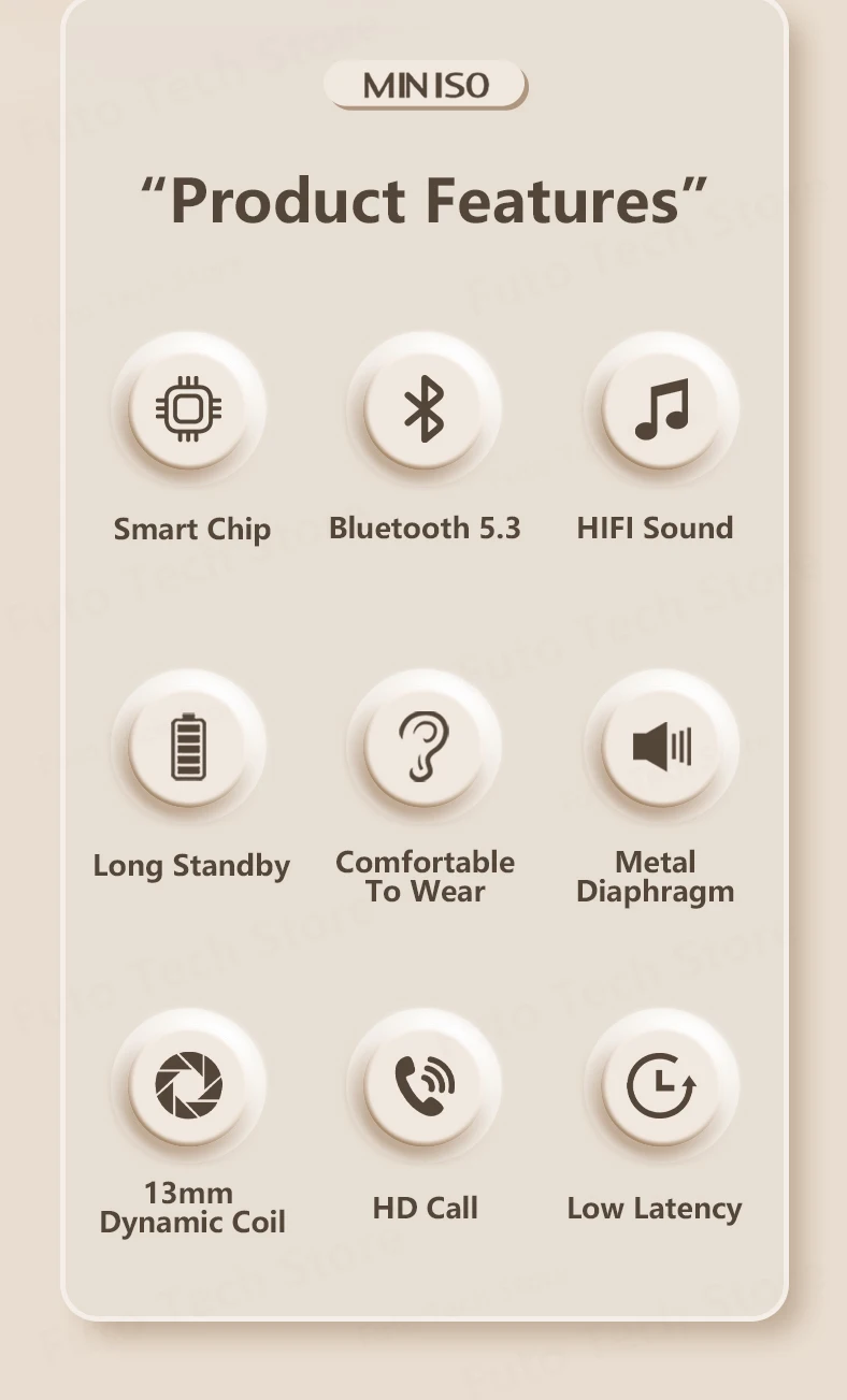 Los auriculares inalámbricos MINISO M06 Bluetooth V5.3 ofrecen varias ventajas para quienes buscan una experiencia de audio de alta calidad. Su avanzada tecnología Bluetooth garantiza una conexión estable, mientras que el sonido estéreo y la reducción de ruido mejoran la claridad del audio. El micrófono integrado y el diseño deportivo los convierten en una opción versátil para juegos, ejercicio y uso diario. Además, su cómodo ajuste y la larga duración de la batería ofrecen una experiencia de usuario práctica y agradable.