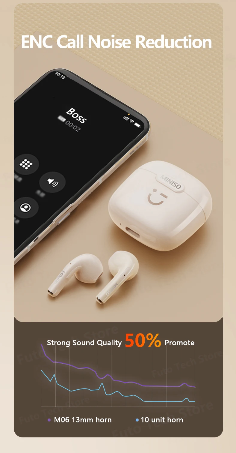 Auriculares inalámbricos originales MINISO M06 Bluetooth V5.3, estéreo, deportivos, para juegos, con reducción de ruido y micrófono.
