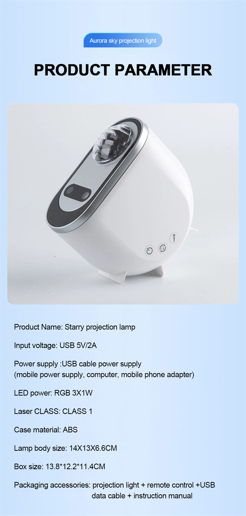 The Aurora Borealis Starlight Projector features advanced LED technology that generates a stunning galaxy-like effect, with stars scattered across your walls and ceiling. These stars shift and move, creating a dynamic, ever-changing starlit atmosphere, just like the real sky above.This projector doesn’t just display static lights; it mimics the slow and serene motion of the Aurora Borealis, making it the perfect tool for setting a tranquil mood. Whether you want to create a romantic environment, a peaceful space for relaxation, or a soothing atmosphere for sleep, this projector helps bring a cosmic vibe into your space with its colorful LED lights.