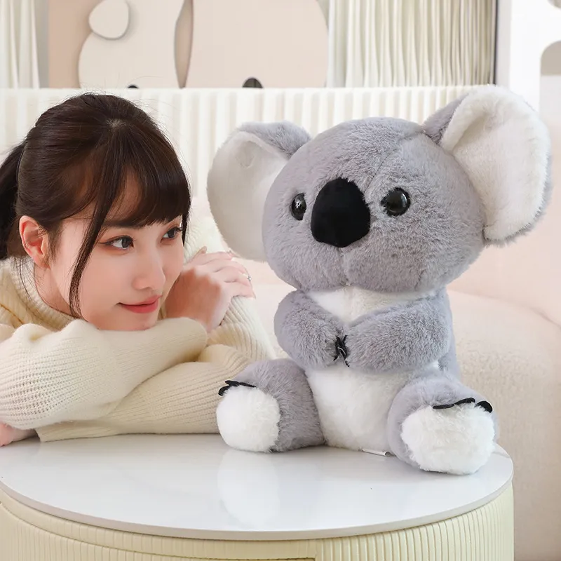 Made with ultra-soft, skin-friendly plush fabric and filled with high-quality cotton, this koala toy is perfect for hugging, playing, or decorating bedrooms, nurseries, or living spaces. Its realistic features – round fluffy ears, soft gray fur, and gentle expression – make it both lifelike and adorable.