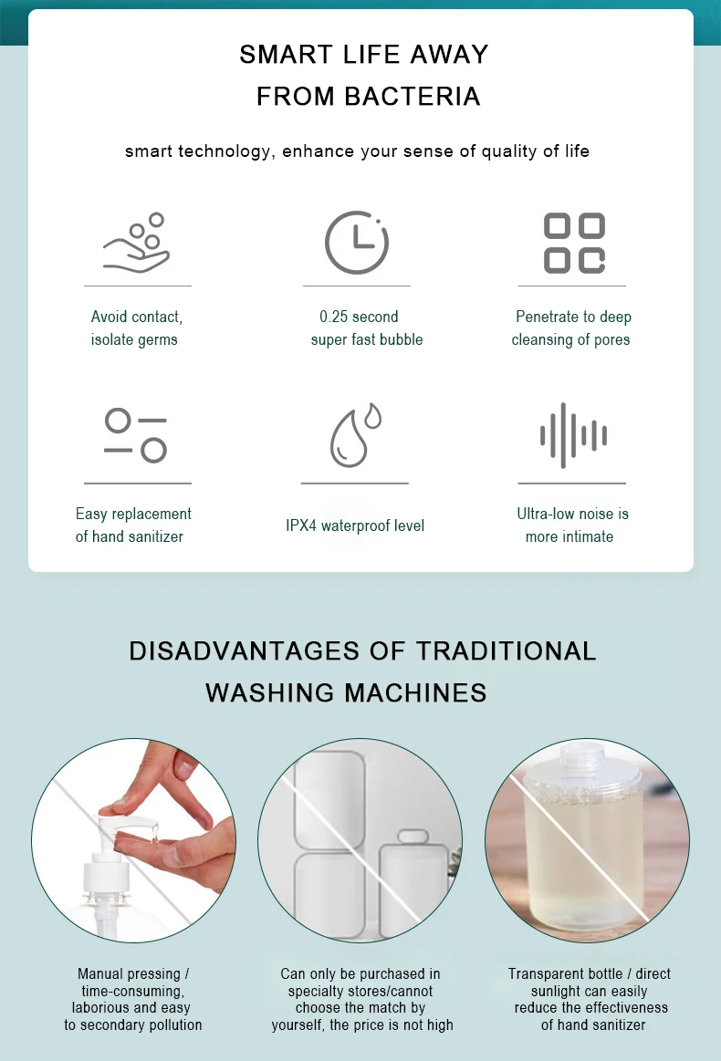 1. 0.25-second near-field infrared induction bubble generation, no need to press to avoid a collision, fully upgraded automatic bubble