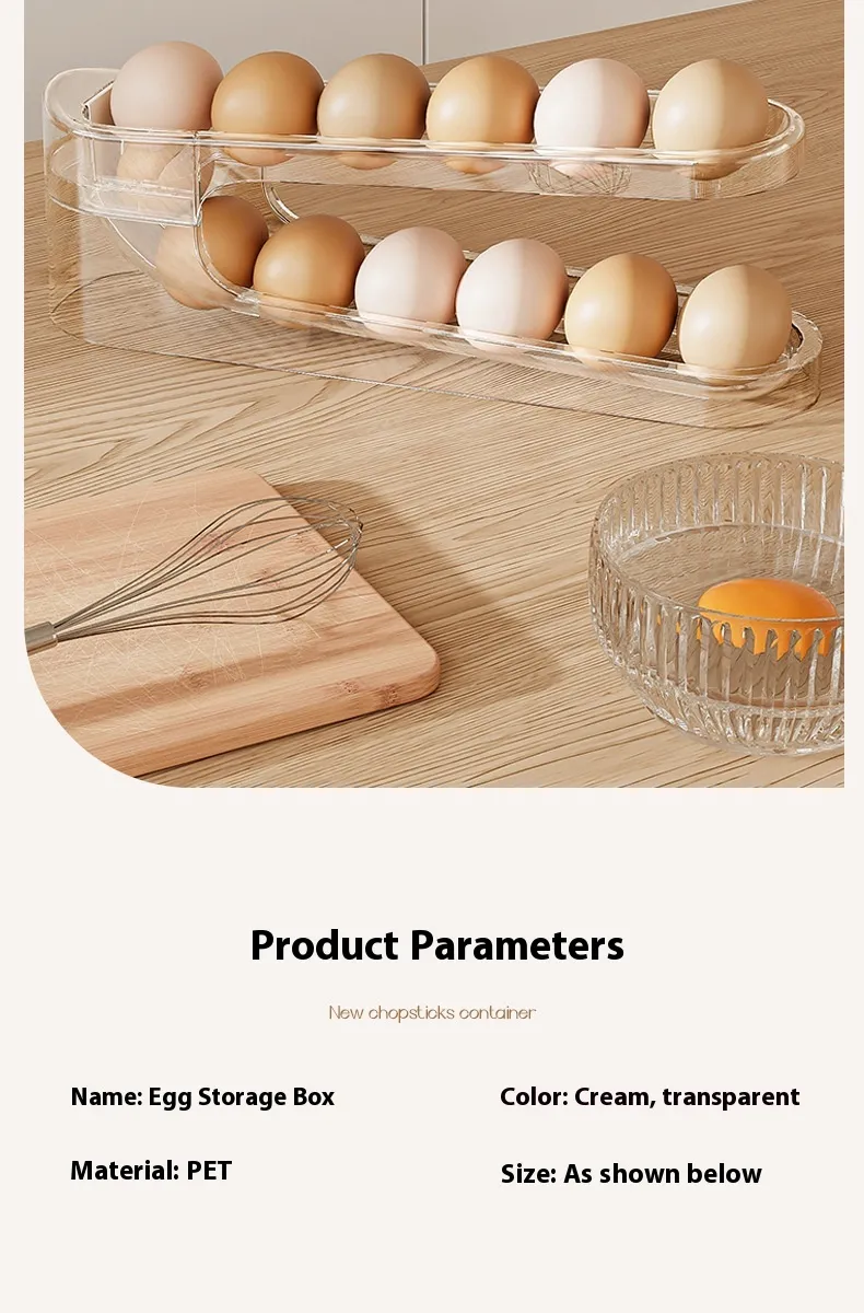 The Automatic Scrolling Egg Rack is the perfect solution for keeping your eggs organized, fresh, and easily accessible in your fridge. Designed for convenience and efficiency, this innovative storage rack allows you to store your eggs in a way that ensures they stay secure while making it easy to access the ones you need. With its automatic scrolling mechanism, the rack efficiently rotates eggs, keeping them fresh and allowing you to use older eggs first, promoting better organization and reducing waste.