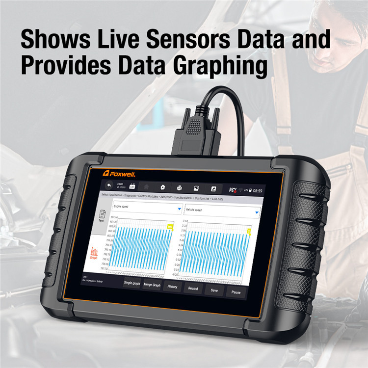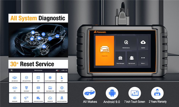 This scanner supports full-system diagnostics for various vehicle systems, such as: