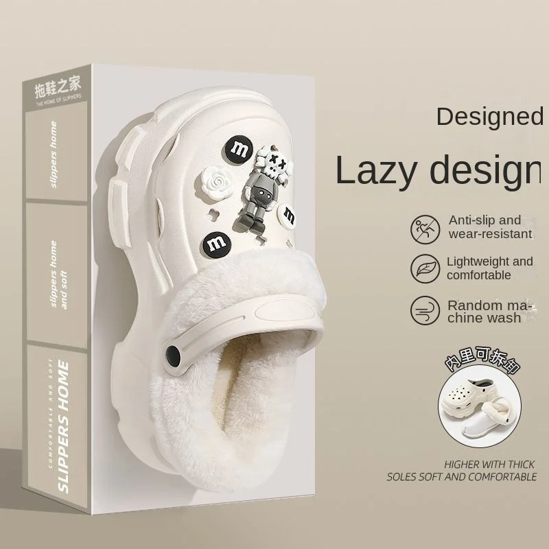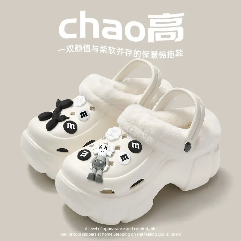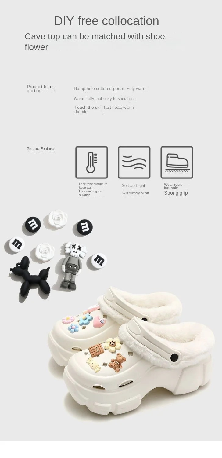 Autumn and winter DIY accessories girls cute padded slippers warm sandals non-slip cloud hole shoes plus cotton garden shoes