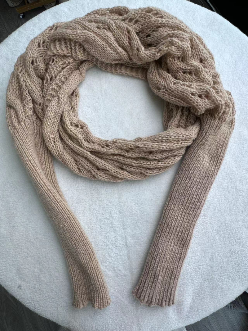 - Material: The Sweater Scarf with Sleeves Is Knitted with Two Needles Using an Openwork Stitch Simulating Spikes and Braids at the Top and Bottom, With a Vegan Wool Composed of Extremely Soft Fiber.