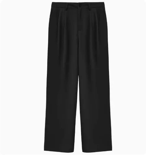 Tailored with a slimming high-waisted cut, the pants gently hug the waist while flowing effortlessly through the legs, thanks to the loose and drooping fabric. This thoughtful design creates a graceful, elongated look that flatters a wide range of body types and adds instant polish to any outfit.