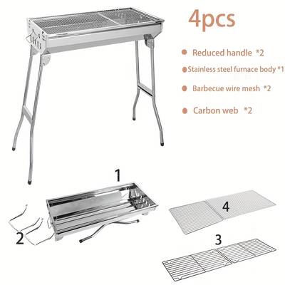 The Awaoko 4pcs Stainless Steel BBQ Grill Set (2025 New Model) features extended, widened, and heightened grill panels designed for powerful airflow, efficient charcoal burning, and even cooking. Made from polished 304 stainless steel, this portable grill is ideal for outdoor camping, backyard BBQs, home cooking, restaurant use, and shashlik/kebab grilling.
