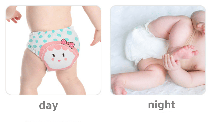 Use our learning pants for babies during the day to make it easier for parents to change them in time. Use diapers for babies at night to