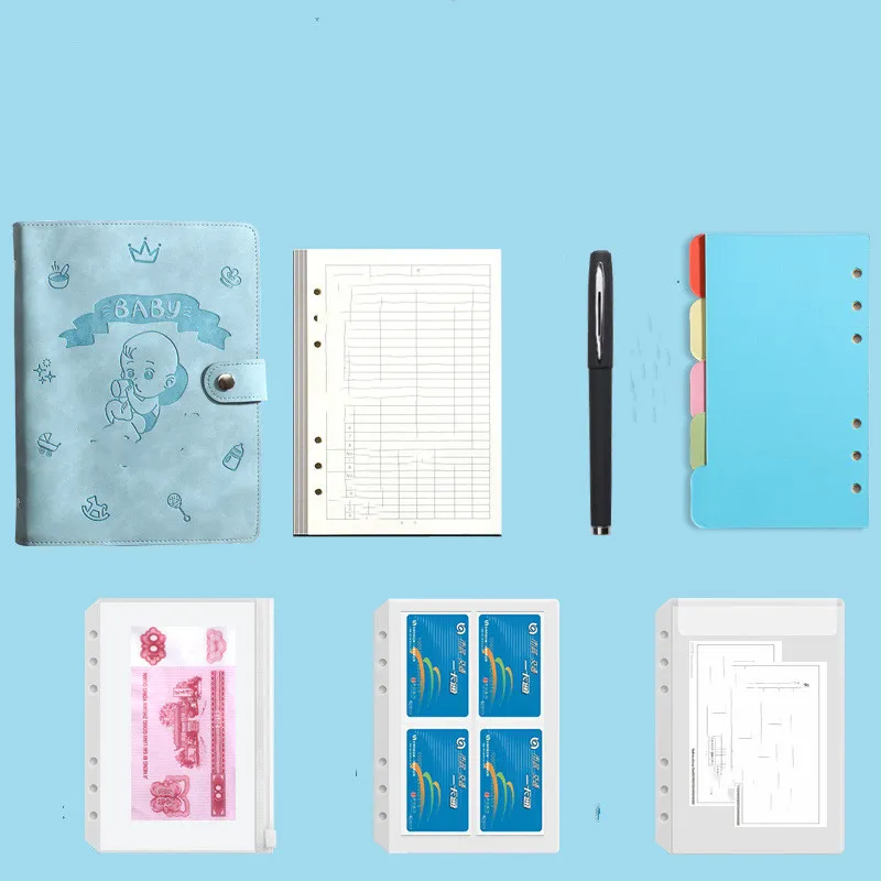 Book x 1/Notebook+signature pen * 1+separator * 5+zipper bag * 1+card storage bag * 1+bill storage bag * 1