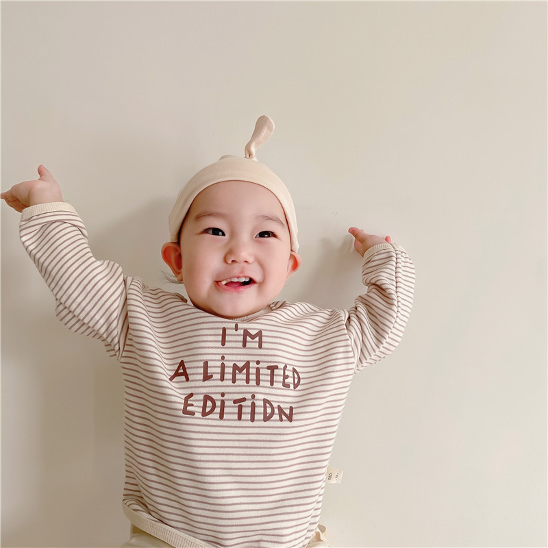 Baby suit Korean version spring new baby alphabet striped T-shirt patch casual pants baby two-piece suit