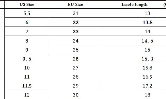 Size: 21 yards/shoe length 13cm, 22 yards/shoe length 13.5cm, 23 yards/shoe length 14cm, 24 yards/shoe length 14.5cm, 25 yards/shoe length