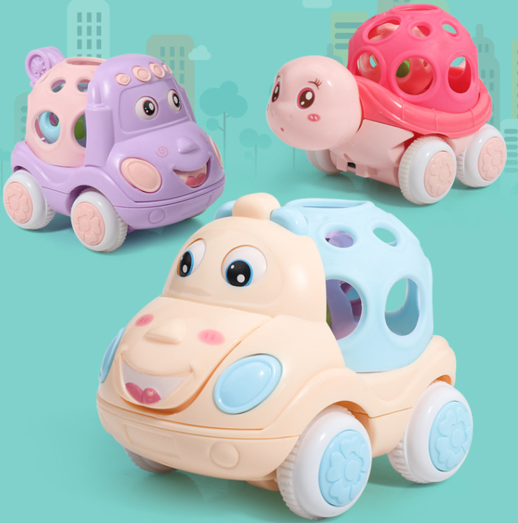 Color: turtle rattle car, smiling face rattle car, three rattle cars