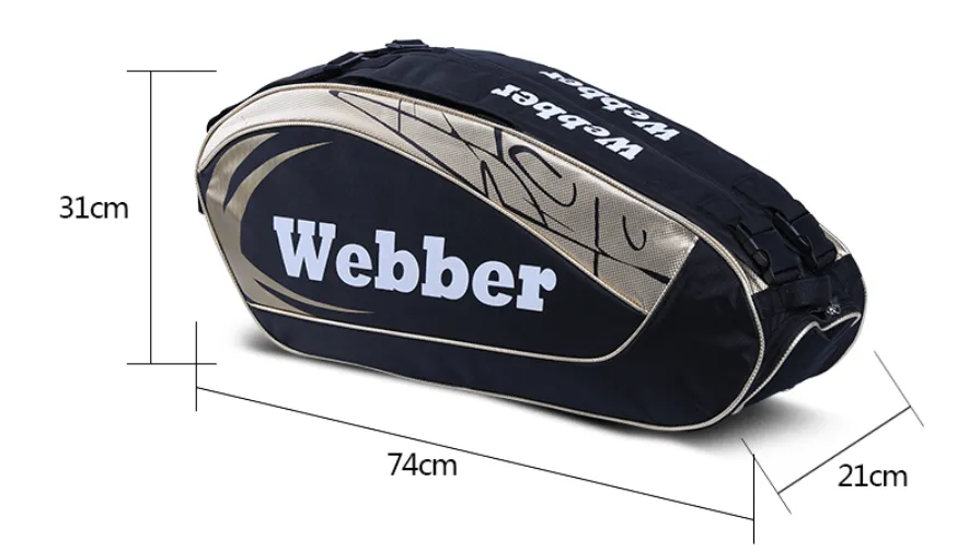Multiple Compartments: Designed with various compartments to store not just rackets, but also accessories like