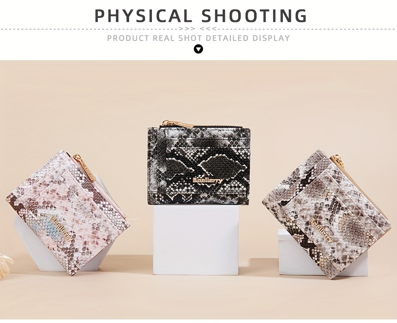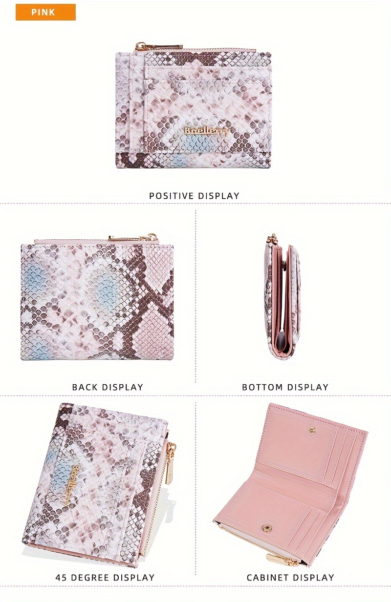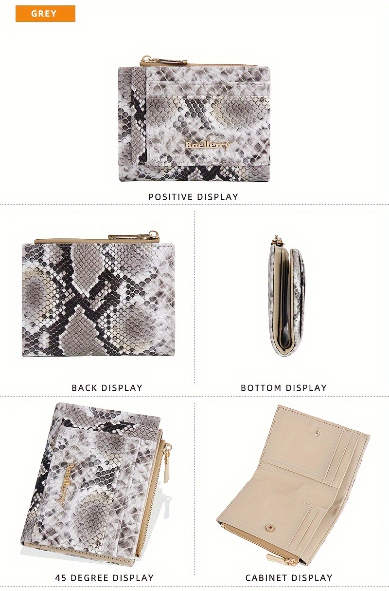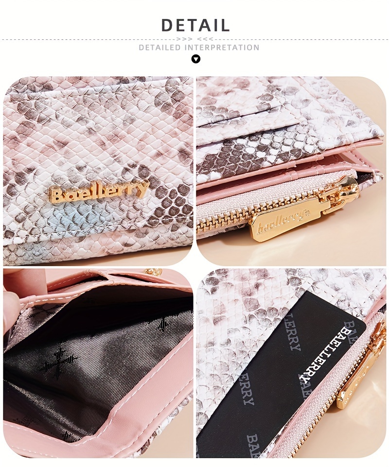 Description – BAELLERRY Snake-Pattern Short Women’s Wallet with Multi-Card Slots & Zipper Coin Purse