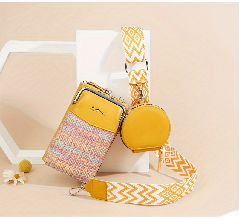 BAELLERRY Women’s Mini Crossbody Bag – Stylish Synthetic Shoulder Bag with Vibrant Yellow & Orange Zigzag Strap