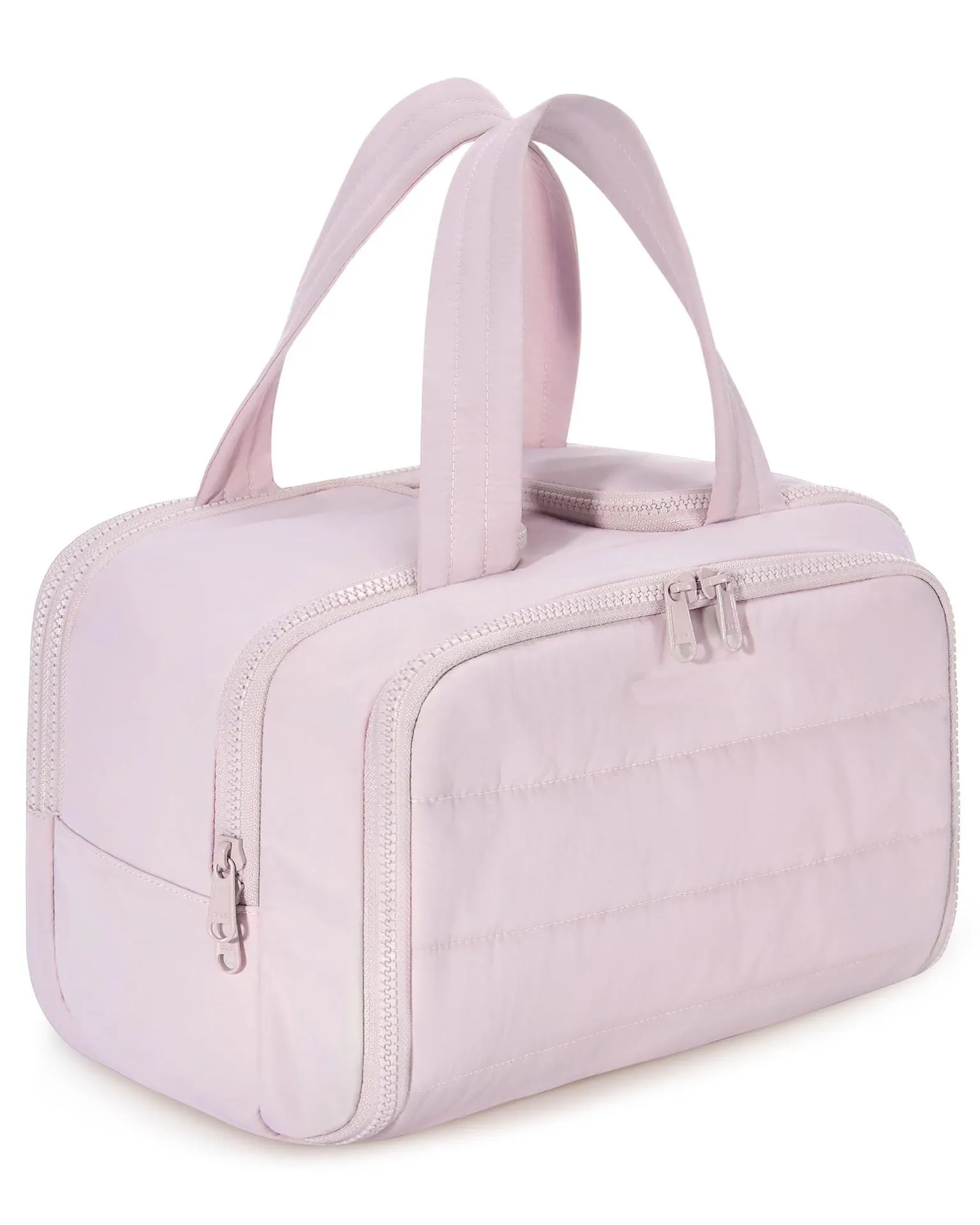 of soft and luxurious fabric. This puffer toiletry bag feels like cotton candy, giving people a relaxed and comfortable atmosphere.