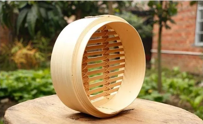 The bamboo steamer is a traditional cooking tool made from natural bamboo, designed for gentle and even steaming. It is typically used by placing it over a pot or wok with boiling water, allowing steam to cook food efficiently.