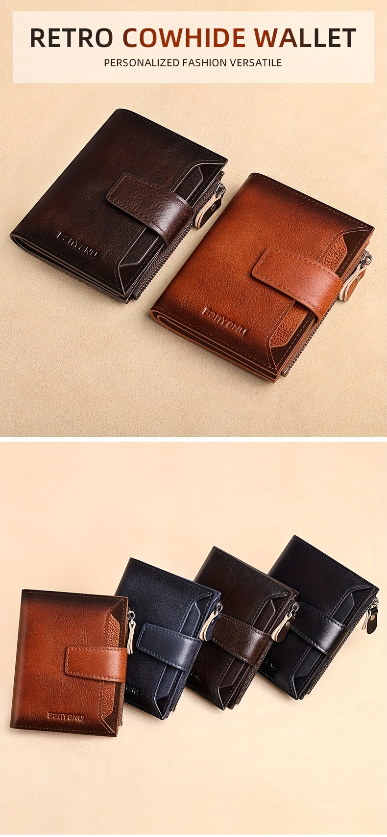 BANYANU Men’s Genuine Leather Wallet – Slim Vertical RFID-Blocking Wallet with Zipper Closure & Multi-Card Storage
