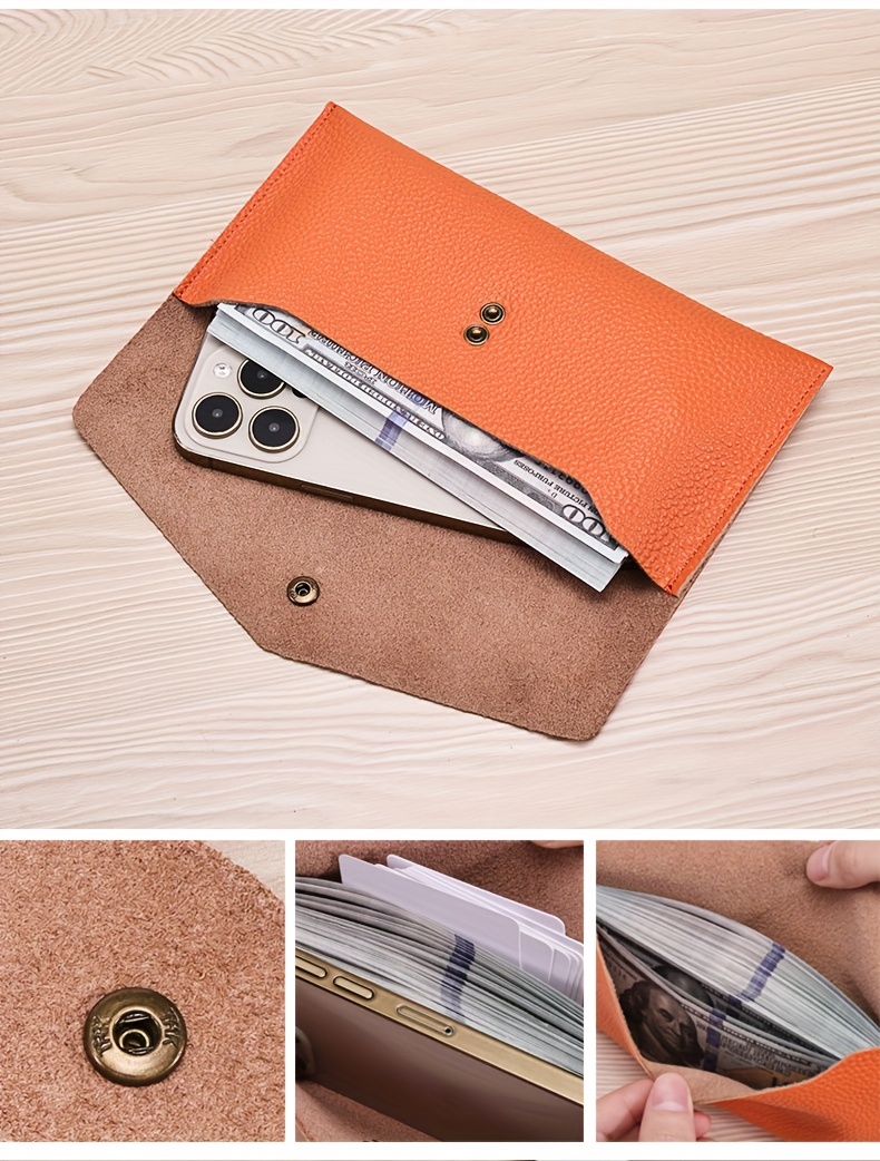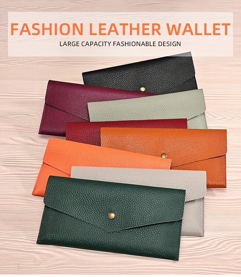 Crafted from soft, non-fading genuine leather and highlighted with sophisticated rivet accents, this envelope-style wallet blends fashion with practicality. It features a spacious interior for storing cash, cards, receipts, and essentials — making it an ideal organiser for fashion-forward women who want to stay both stylish and organised.