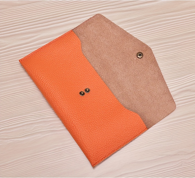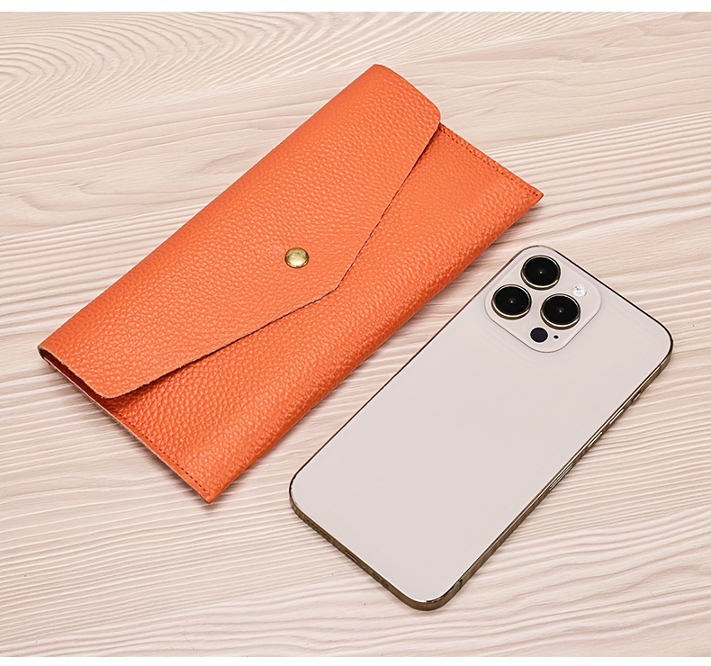 The modern envelope silhouette provides a fashionable yet practical shape that opens neatly to reveal your essentials. Stylish yet easy to carry, this design suits handbags, totes, crossbody bags, and formal clutches.