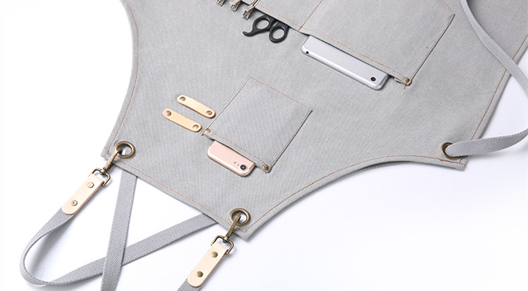 The apron includes multiple pockets and loops for organizing tools, allowing stylists to work efficiently while keeping essential items within reach.