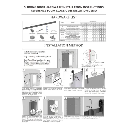 Product Name:CRAZY ELF 6.6FT Heavy Duty Sturdy Sliding Barn Door Hardware + Adjustable Floor Guide Wall Mount Roller + Pull Handle, J Shape Hangers, Smoothly and Quietly, Easy to Install, Fit 24"-36" Width Door.