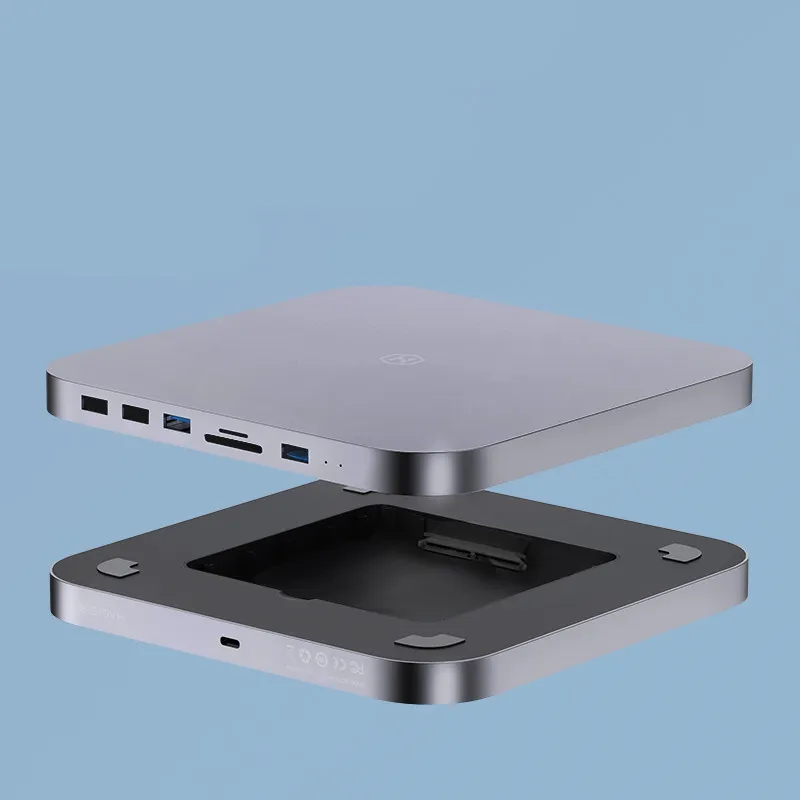 El Expansion Dock cuenta con una caja de disco duro incorporada, que le proporciona espacio de almacenamiento adicional sin la necesidad de unidades externas que abarroten su escritorio. Simplemente conecta tu disco duro a la caja y amplía al instante la capacidad de almacenamiento de tu ordenador, lo que facilita el almacenamiento de archivos, documentos, vídeos y fotos de gran tamaño. Esta función es especialmente útil para quienes necesitan acceder o almacenar archivos grandes con frecuencia, como videógrafos, fotógrafos o creadores de contenido que trabajan con proyectos multimedia. Al usar la base de expansión como un centro de almacenamiento centralizado, puedes gestionar todos tus datos en un solo lugar y, al mismo tiempo, liberar espacio en el disco duro interno de tu ordenador. Acceso a archivos y gestión de datos prácticos. Con la caja del disco duro integrada en la base de expansión, puedes acceder fácilmente a tus archivos y gestionar tus datos. Simplemente conecta la base a tu ordenador mediante los puertos USB-C o USB 3.0 proporcionados y estarás listo para transferir archivos o ejecutar aplicaciones directamente desde tu disco duro externo. La función "plug-and-play" garantiza un acceso rápido y sencillo a tu almacenamiento sin necesidad de controladores ni software adicionales.