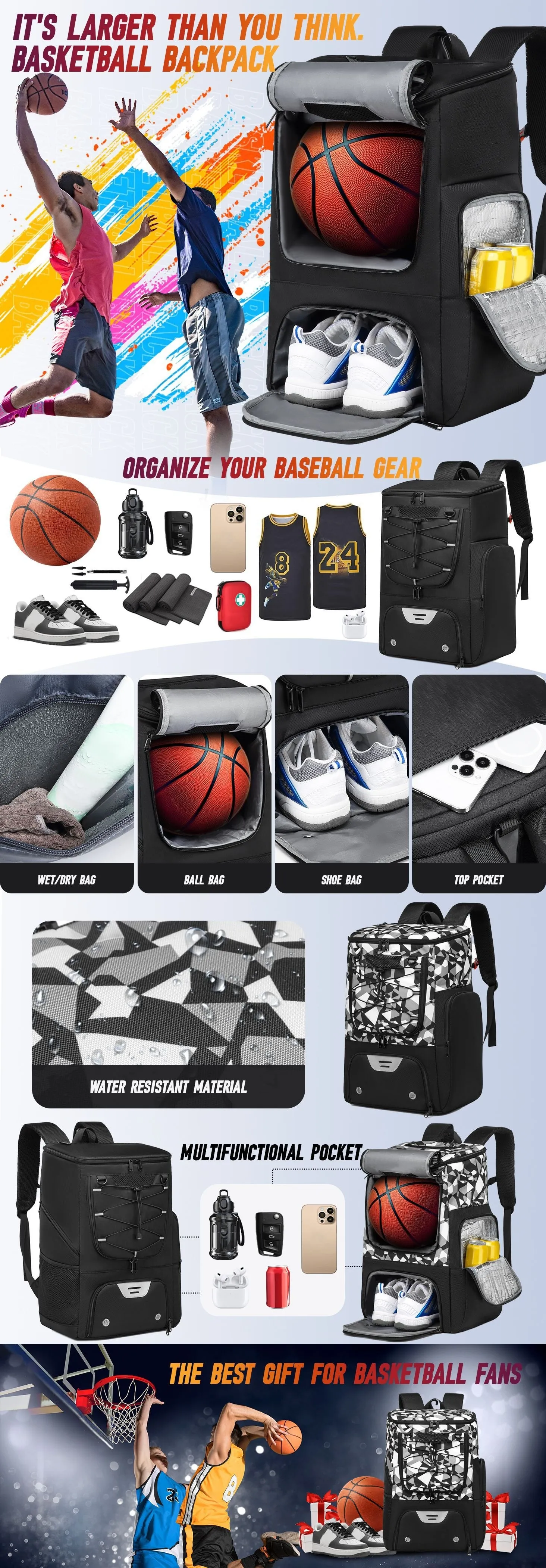 1. Spacious Storage: Includes multiple compartments for basketballs, shoes, clothing, and accessories, keeping everything
