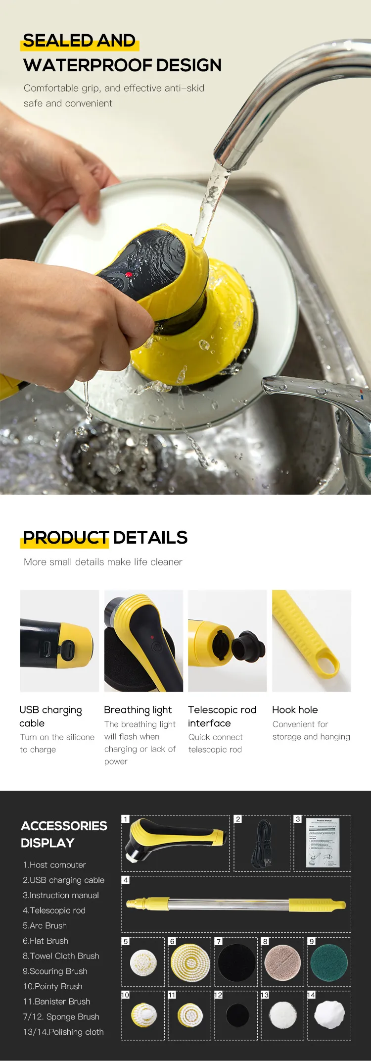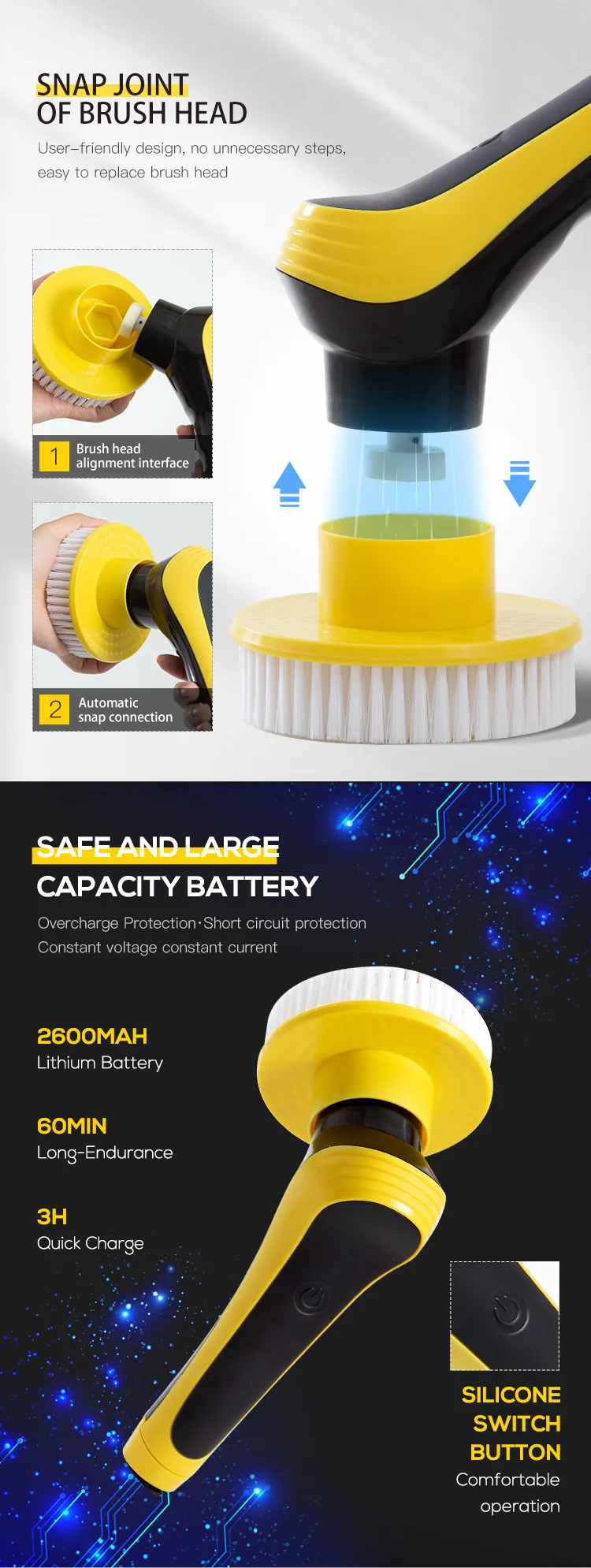 Our Electric Cleaning Brush, the perfect companion for tackling dirt and grime with ease. No more tedious scrubbing by hand – this wireless adjustable brush makes cleaning a breeze. From bathroom floors to kitchen tiles, it effortlessly restores surfaces to their sparkling best.
