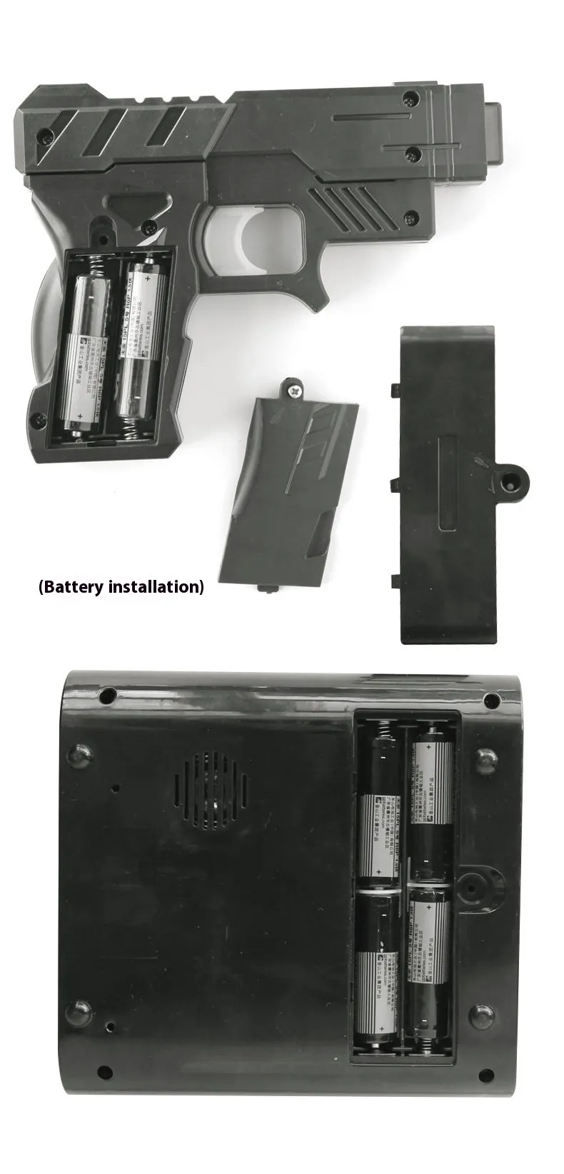 - Step 1: Install the required batteries into the clock and the toy gun.
