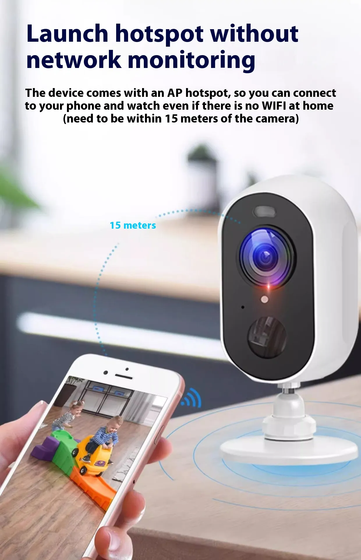 Designed for long-lasting performance, the Battery Surveillance Camera provides extended battery life, so you don’t have to worry about frequent recharging. The battery is optimized for power efficiency, ensuring that your camera remains operational for long periods, even with continuous monitoring.