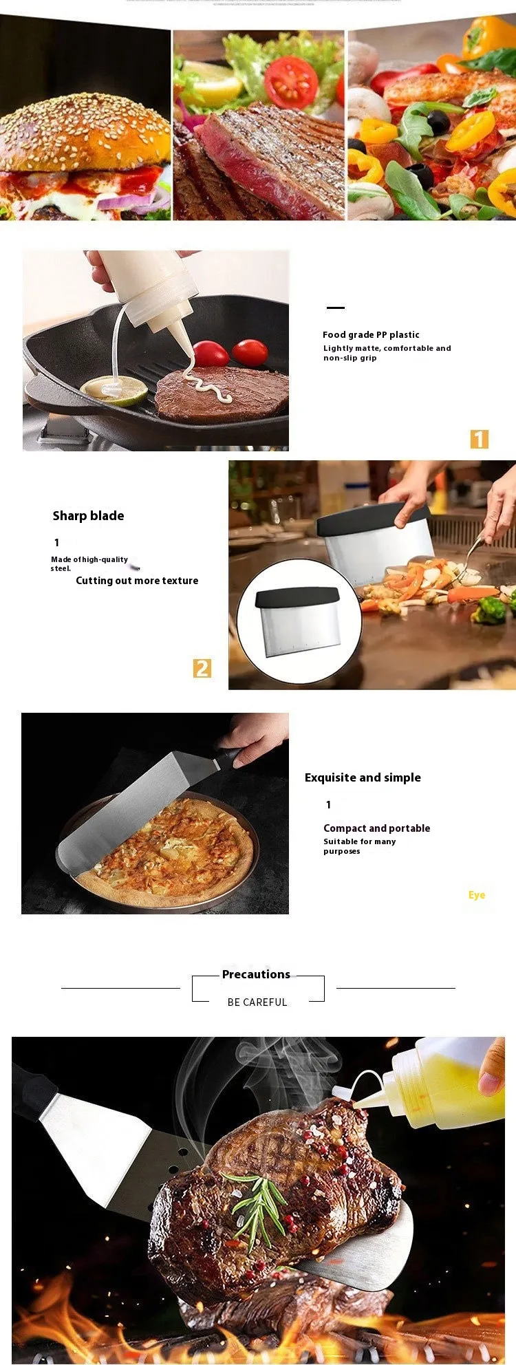 Example: Make your next BBQ a success with the right tools to handle all types of food, from juicy steaks to grilled vegetables.