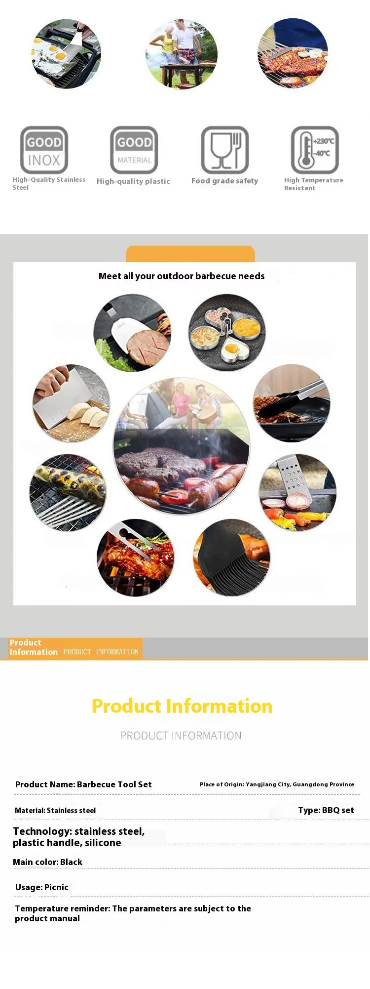 Example: After your BBQ, simply clean the tools with ease, saving time on cleanup so you can enjoy your meal without the hassle.