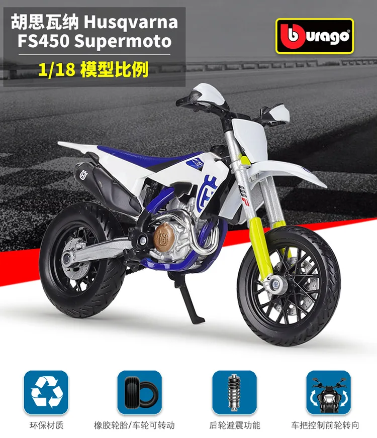 Bburago 1:18 Husqvarna FS450 Supermoto Model Car – Diecast Alloy Motorcycle Toy