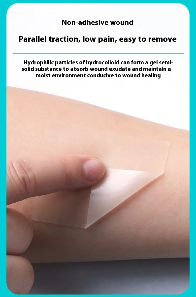 Crafted from biocompatible and skin-safe materials, the hydrocolloid layer interacts with wound exudate to form a soft gel that maintains hydration, protects against infection, and cushions the affected area. Its gentle adhesive ensures secure attachment without damaging surrounding skin during removal.