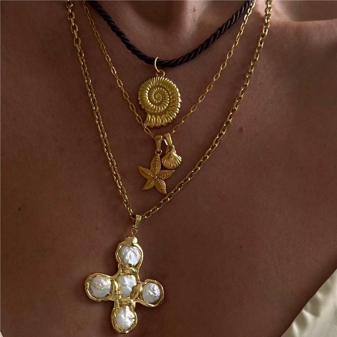 The conch shell is a central feature of this necklace, representing the beauty and serenity of the ocean. Conch shells are often seen as symbols of peace, protection, and the rhythm of the sea, making them a perfect design element for a beach-inspired accessory. The intricate detailing of the conch adds texture and visual interest, making it a striking focal point of the necklace.The natural beauty of the conch design evokes memories of beach vacations, with the soft, swirled shape and elegant curves symbolizing the calming influence of the ocean. Whether you're a beach lover or simply appreciate the natural world, the conch shell design will remind you of the beauty and tranquility of the sea.