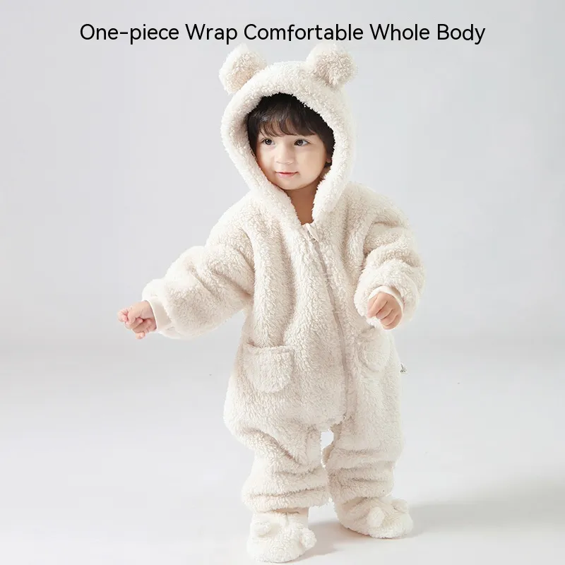 Its all-in-one design provides complete coverage, including long sleeves, full-length legs, and a hood that often features bear-inspired details such as ears for a fun and playful look. This combination of functionality and design makes it suitable not only for sleepwear but also for casual wear around the house or themed occasions.