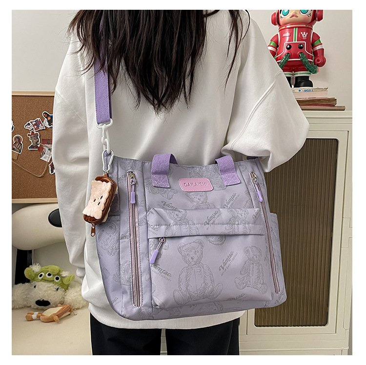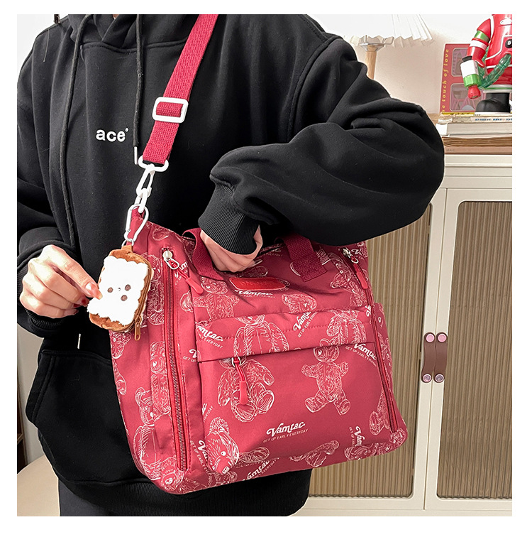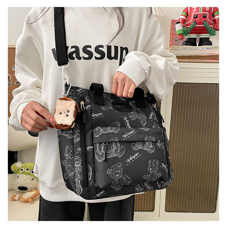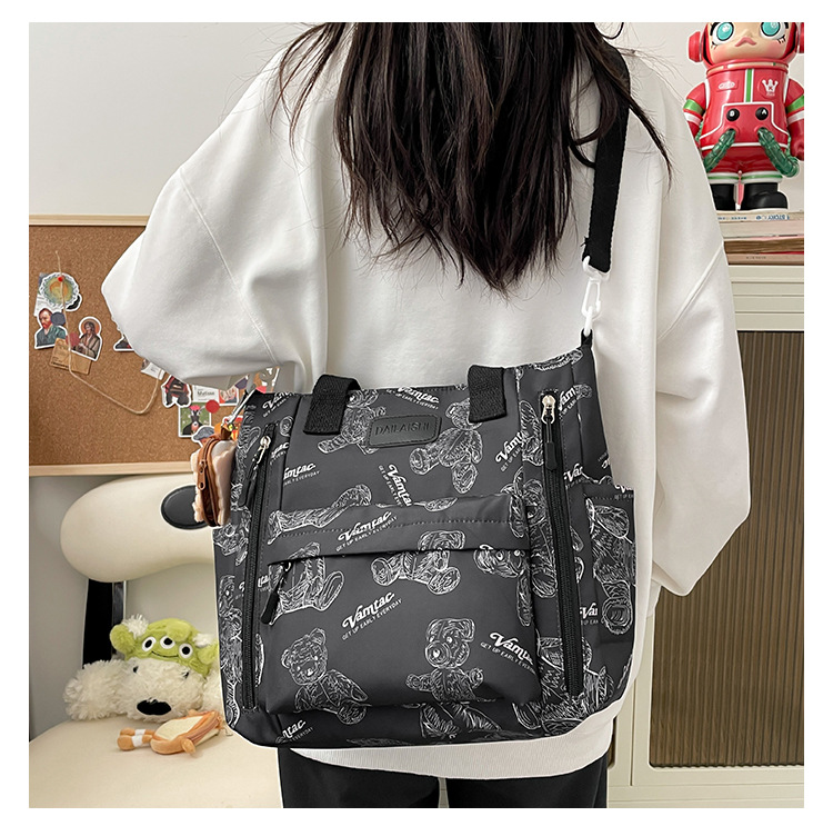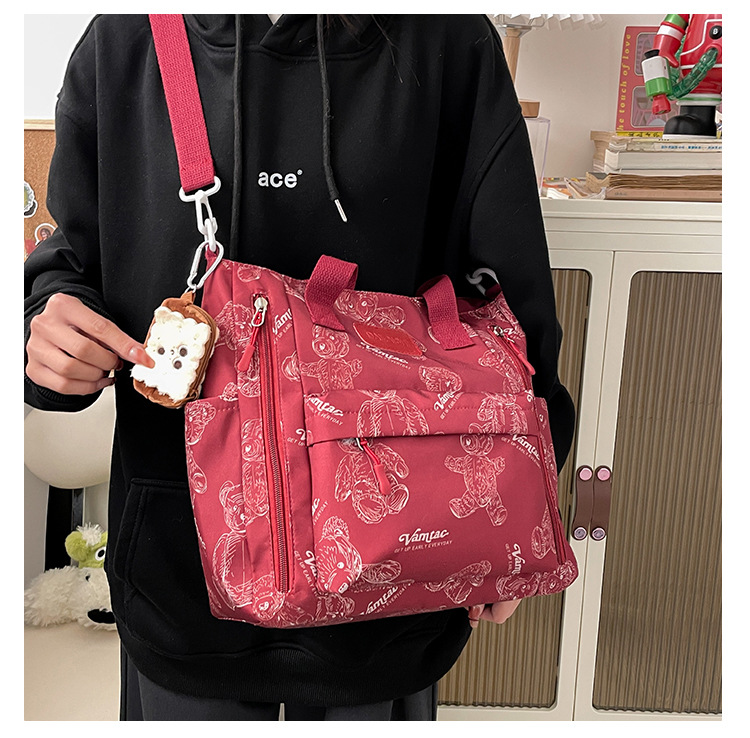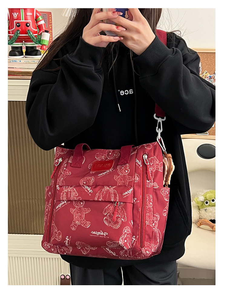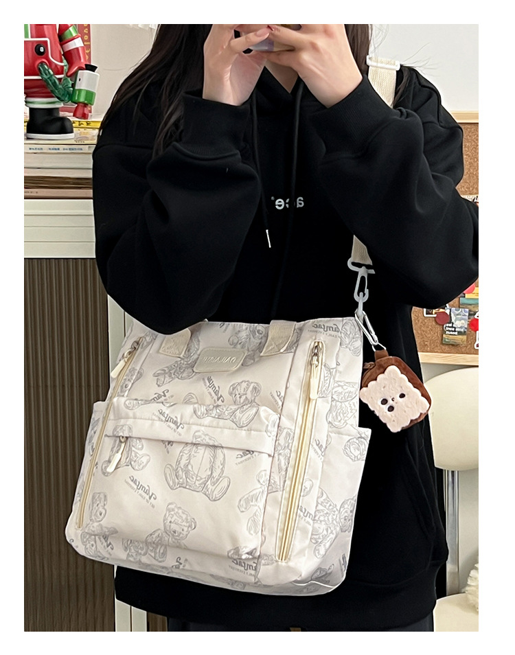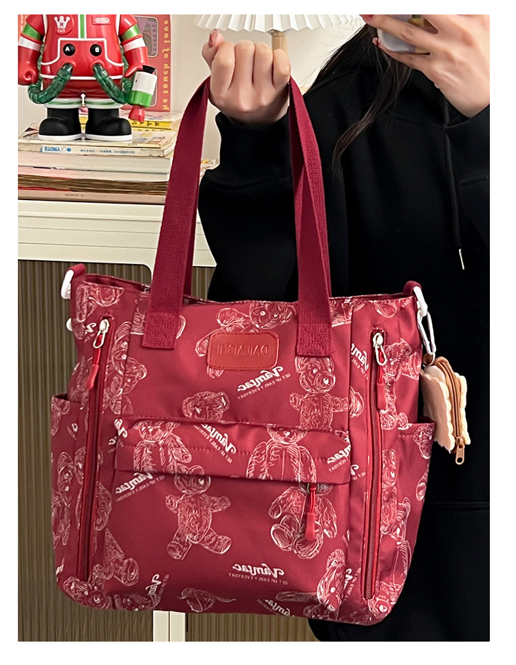 Bear Print Large Capacity Multi-Pocket Tote Bag – Shoulder Bag and Crossbody Lightweight Handbag
