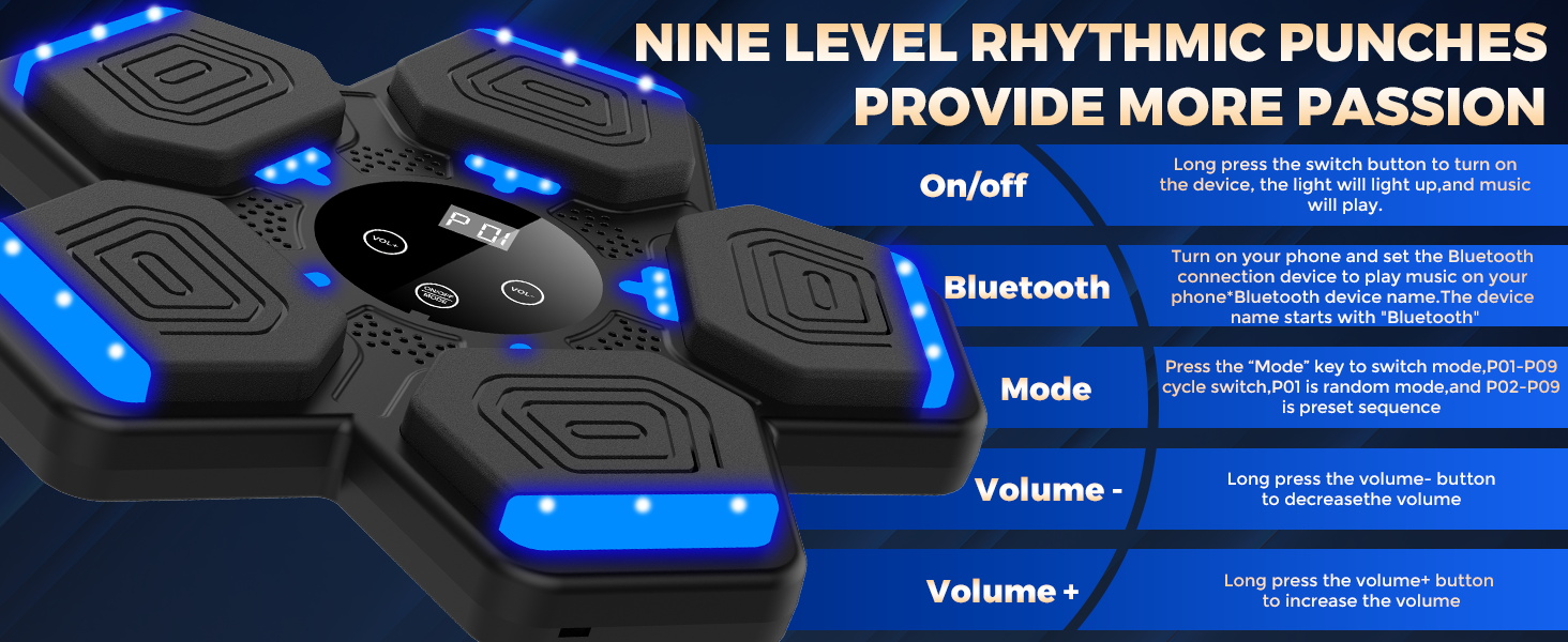 - INTELLIGENT MUSIC BOXING MACHINE - A new upgraded music boxing equipment. Nine volume levels are precisely tuned. The sound quality is optimized by professional sound engineers, bringing ultimate music enjoyment. Upgraded high-capacity batteries saves you from worrying about battery life. Just enjoy the fun of sports!