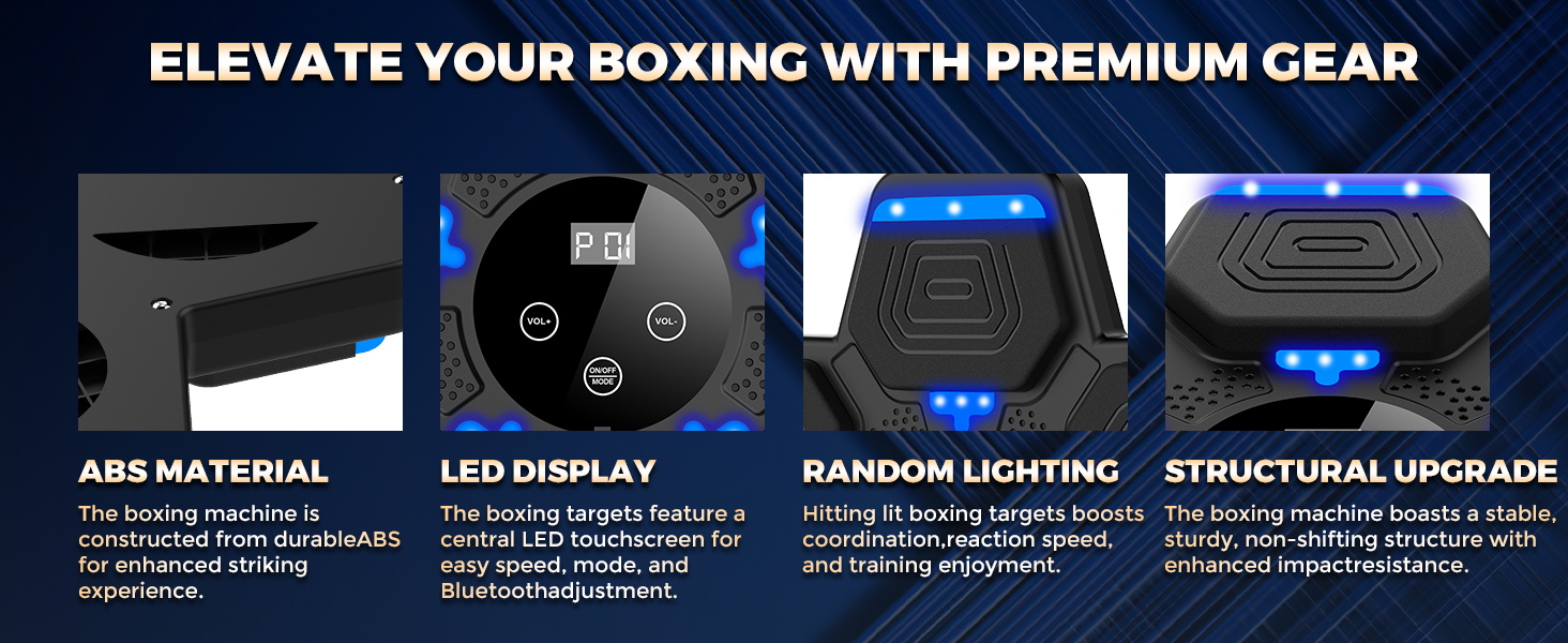 - The Boxing Music Machine: Offers an innovative boxing game experience at home. This wall boxing punching pad features interactive boxing target games and boxing electronic scoring to elevate your training sessions.