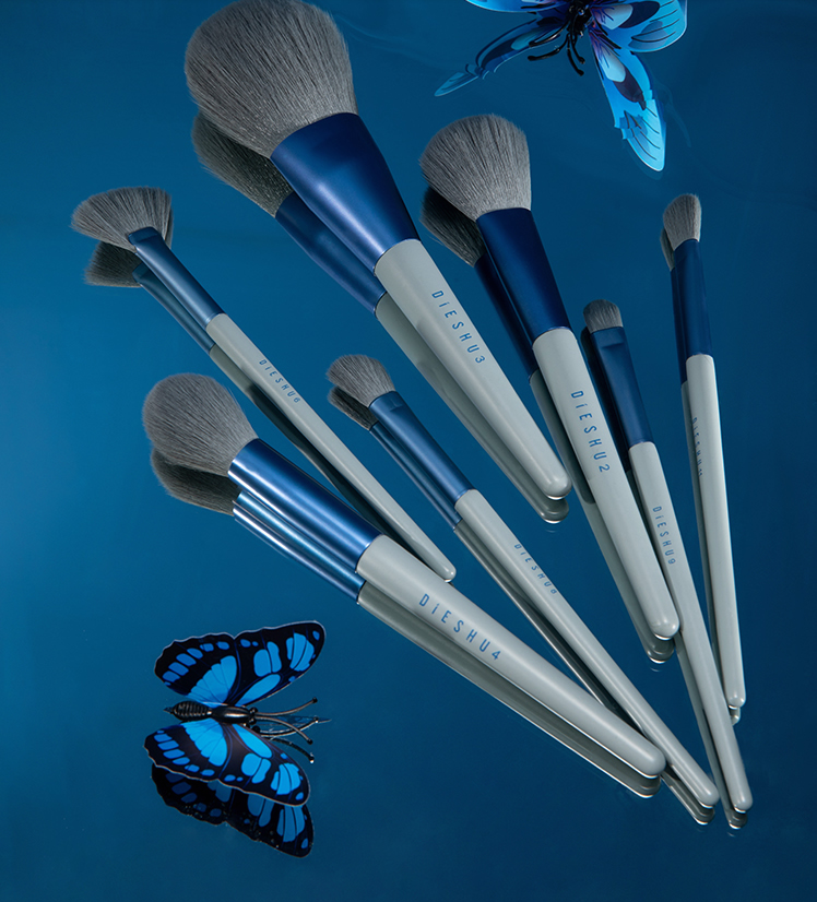 - Eye Brushes: Eyeshadow brushes (flat, blending, and crease), eyeliner brushes, eyebrow brushes, and smudger brushes.