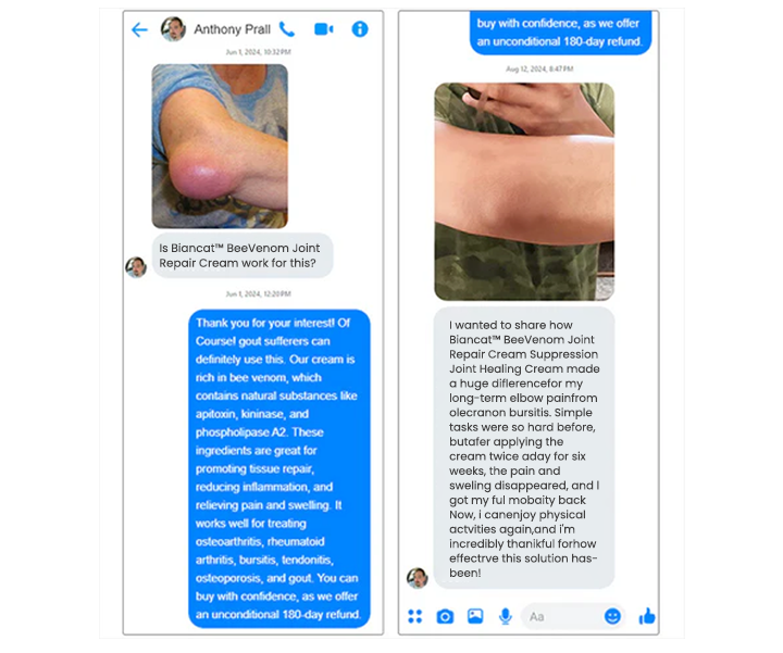 solution, I tried Biancat® BeeVenom Joint Repair Cream. Within three weeks, I noticed relief, and after seven weeks, my pain was completely