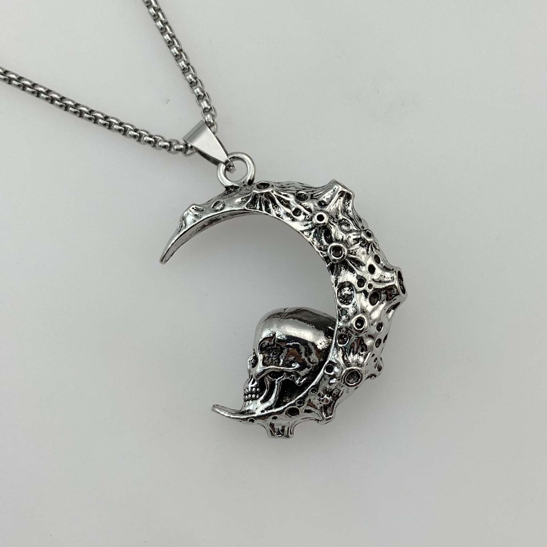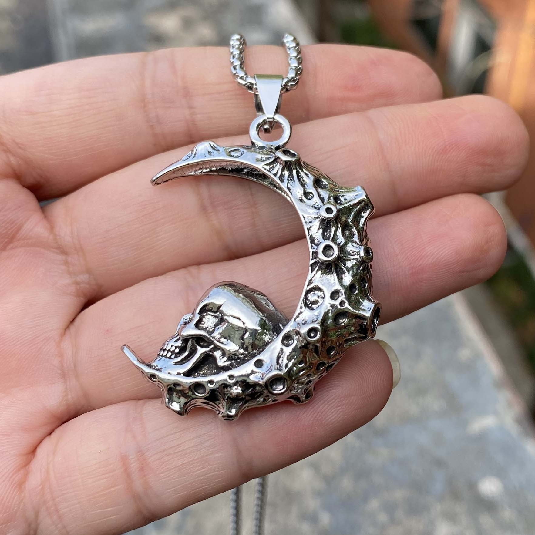 Why You Should Choose the Big Stainless Steel 3D Moon Skull Pendant Biker Punk Necklace