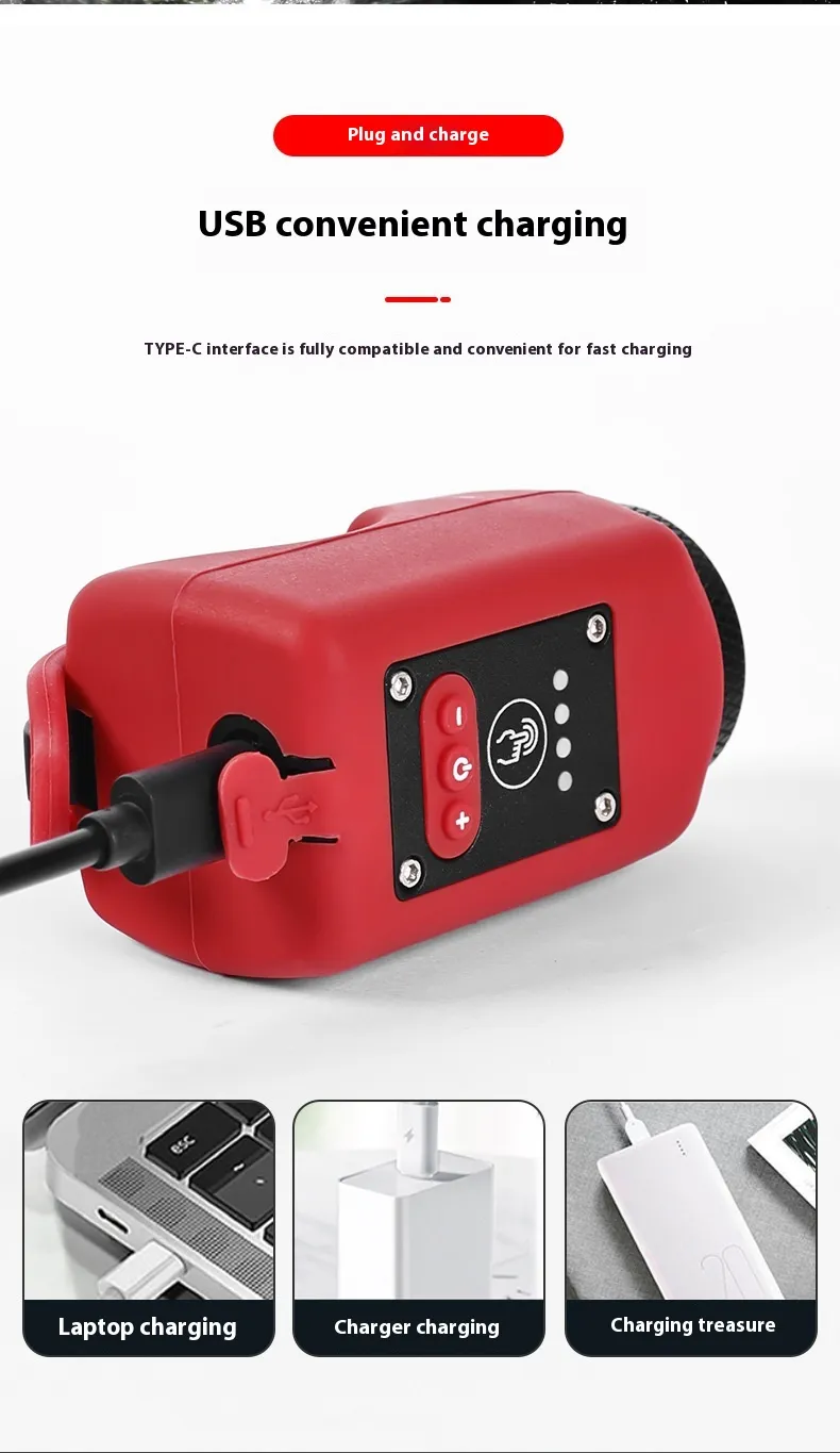 【USB Rechargeable】With Built-in 1200mAh lithium battery,used more convenience .With USB charging port, approx. 225 minutes In Strong Light Mode.